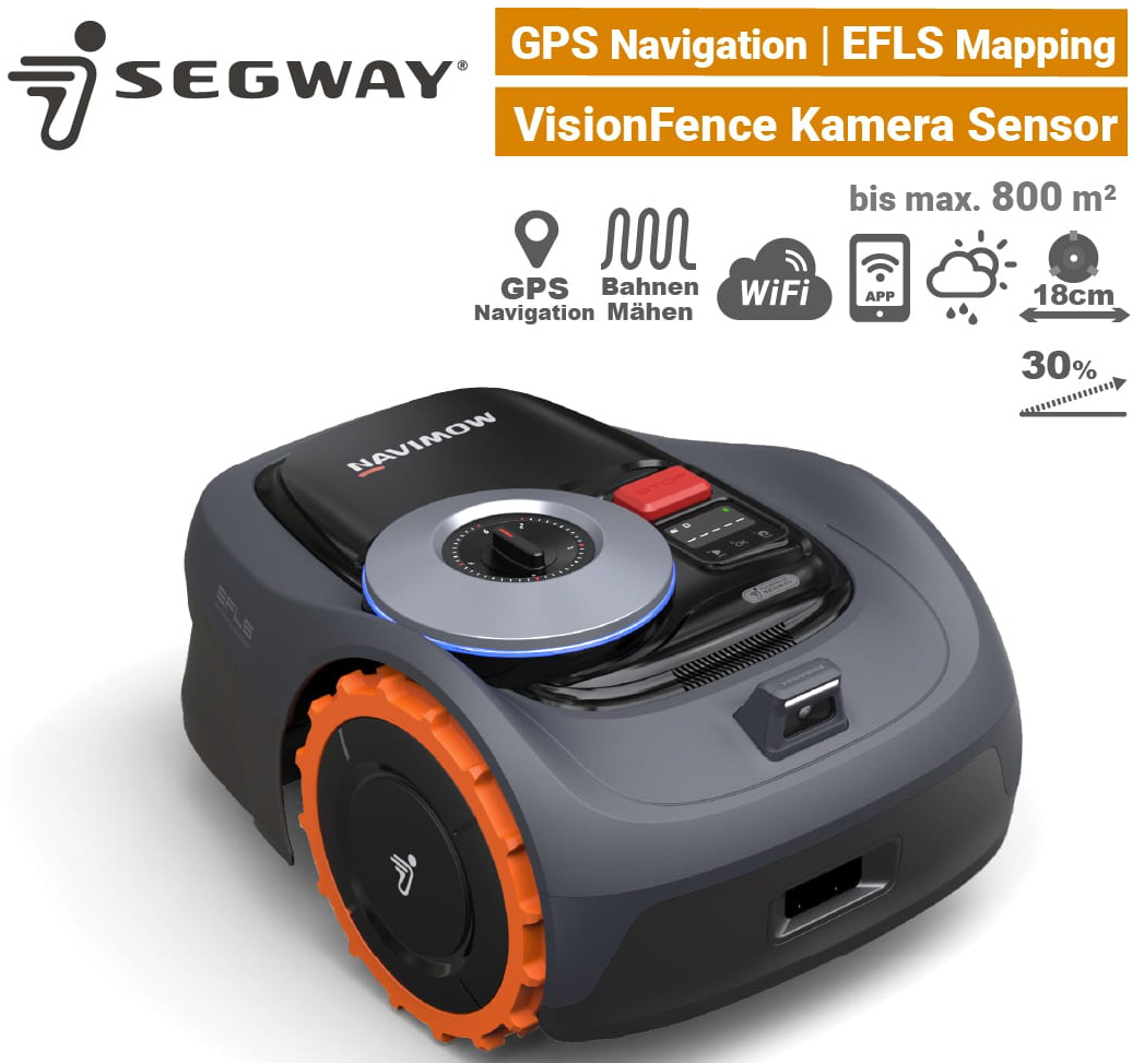 Segway Navimow i108E Modell 2024/2025 (baugleich) - mit Ki-Kamera bis 800 m² Segway Navimow Navimäher ohne Draht/Navimow i-Serie 2024/2025 (baugleich) Art.-Nr. AA.12.02.03.0005